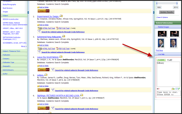 University of Calgary, chat embedded into EBSCOHOST, image from Distance Librarian Blog