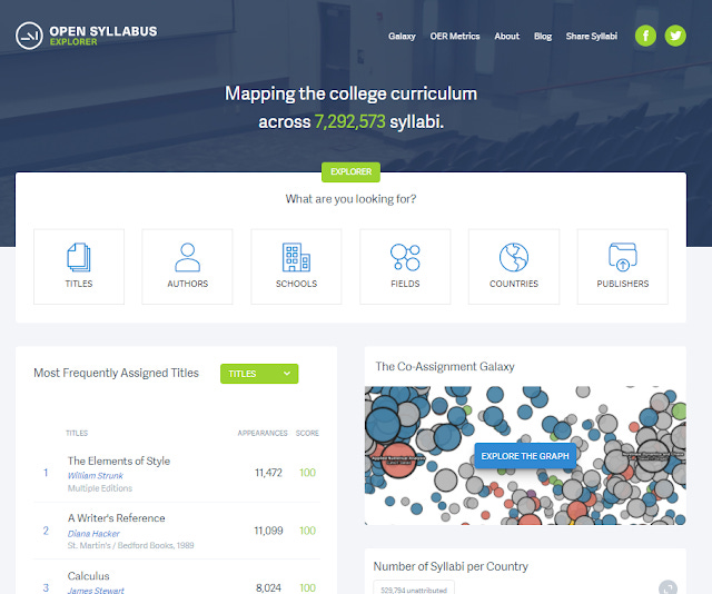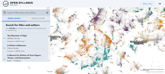 The first is an updated "Open Syllabus Galaxy". If you like visualizations this is for you.