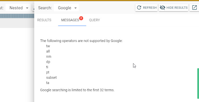 Of course these different searches would have different syntax and functionality , so when you try to change an existing search strategy built to work with say PubMed to say Google, it will try to warn you that in Google, various field searches don't work.