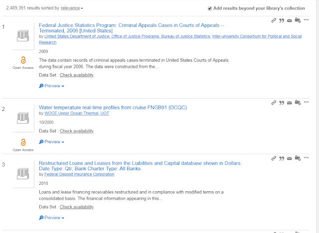 Interesting to note web scale discovery services like Summon already have 2 million items marked as datasets....
