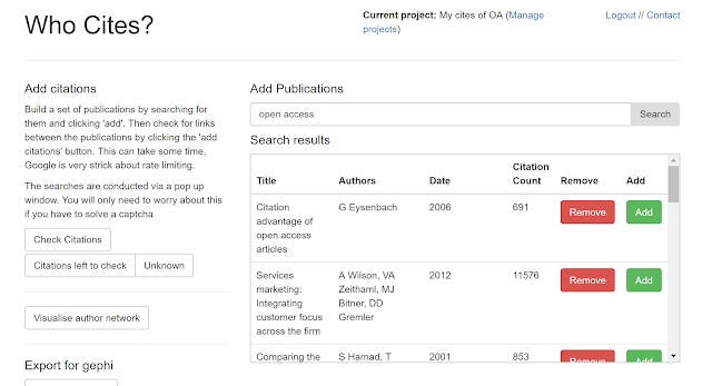 Phd student Jimmy Tidey has produced a intriguing tool that allows him to scrape Google Scholar for papers and references and automatically generates a network map.