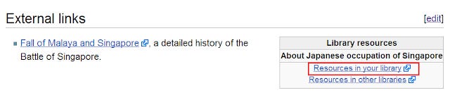 All the things I mention above are not new. But this last one is new. Rather then explain, let me just show you the Wikipedia article I inserted the library resource box. In this case this is the Wikipedia article Japanese occupation of Singapore .
