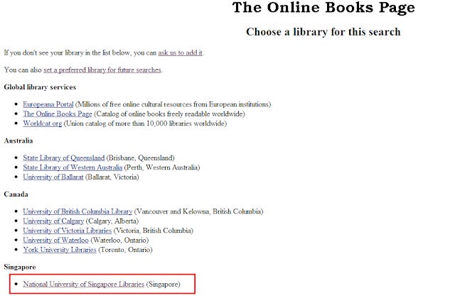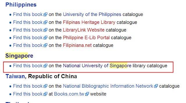 The great thing about this is that once I add the box in an article, all libraries in the system benefit. Right now, we are the only Singapore Library available in the list but it's trivial for John to add other Singapore libraries such as the National Library Board's etc and we all benefit!