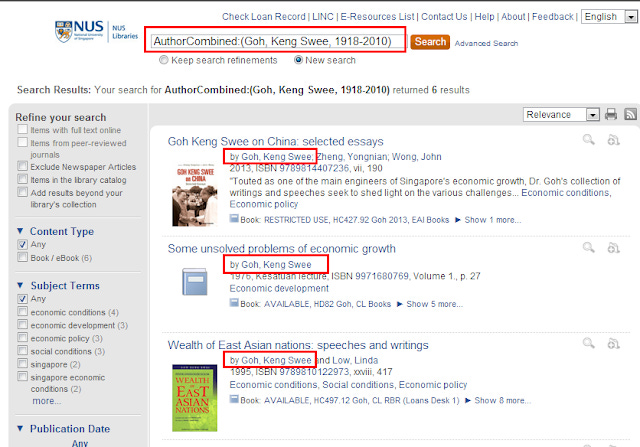 You will see because I changed the options there is now a "About Goh Keng Swee" as well as a "By Goh Keng Swee".