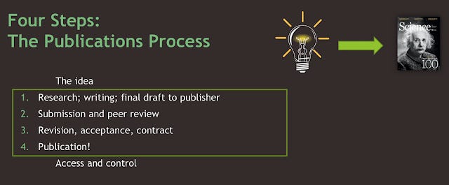 How the game works is that the audience is guided through a simplified publication process that consists of four steps from the initial idea and research all the way to publication.