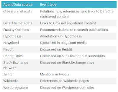 While some of the events draw from sources like Twitter, Wikipedia, Reddit etc and have a distinct altmetric like feeling it is important to note that Events data allows you to find references between Crossref and Datacite DOIs, particularly in the area of data citation