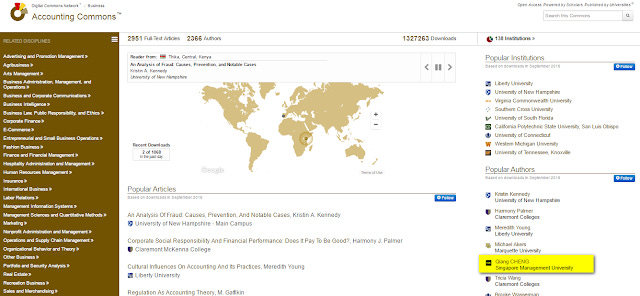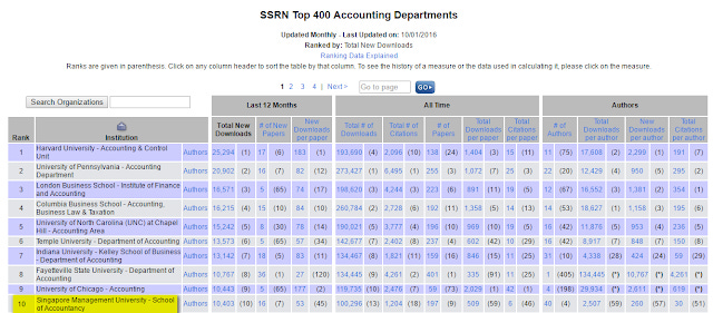 So in the above example, I can see how well Faculty from the School of Accountancy here are doing versus various peers in the same field who also put their papers on their IR. Happily I can report, the dean of the accountancy school here is one of September's most popular authors in terms of downloads.