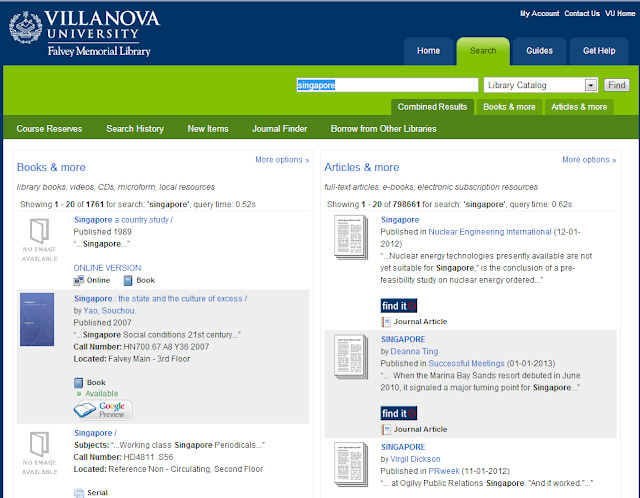 So what is to be done? An attempt is to improve that is becoming popular is to do a "bento style" results list, with results segregated by content types. Many University Libraries around the world such as Columbia University Library, NCSU State University Library, Princeton University Libraries, Dartmouth etc are doing so.