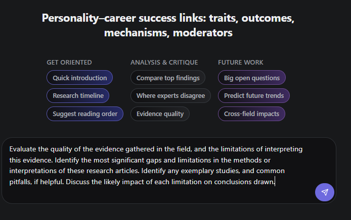 The interesting bit is the explicit attempt to rank not only by textual relevance, but also by proxies for research quality (citations, study design, journal-level signals). This is common in traditional academic search (think Google Scholar), but still relatively rare among newer AI search tools that often optimise purely for semantic similarity.