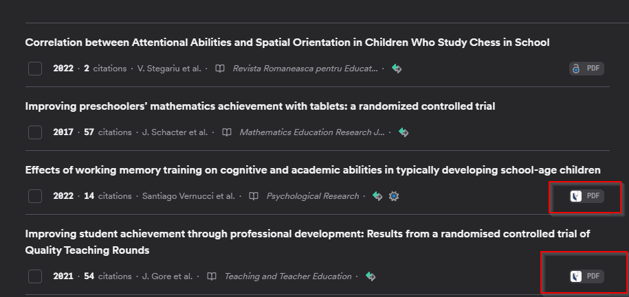 From a user experience perspective, Consensus appears more accessible to less advanced users. The Consensus Meter, despite its methodological limitations, provides an intuitive visualization that appeals to many users. The color-coding of citations makes it easy to see at a glance which papers support different conclusions, and the built-in visualizations require no additional prompting or effort. Small but practical features like LibKey integration for accessing full-text articles are particularly valuable for undergraduate students who may not have established workflows for accessing institutional subscriptions.