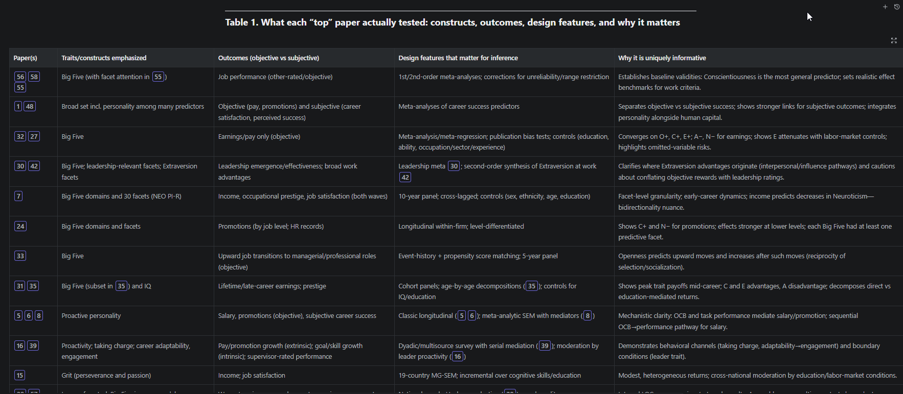 You can type in your own prompt but by default it includes nine prompts that are surely well-engineered to work effectively with Undermind, and in my experience, these prompts can generate outputs matching or exceeding what Consensus produces automatically, including equivalents to Consensus’s “Claims and Evidence Table.”