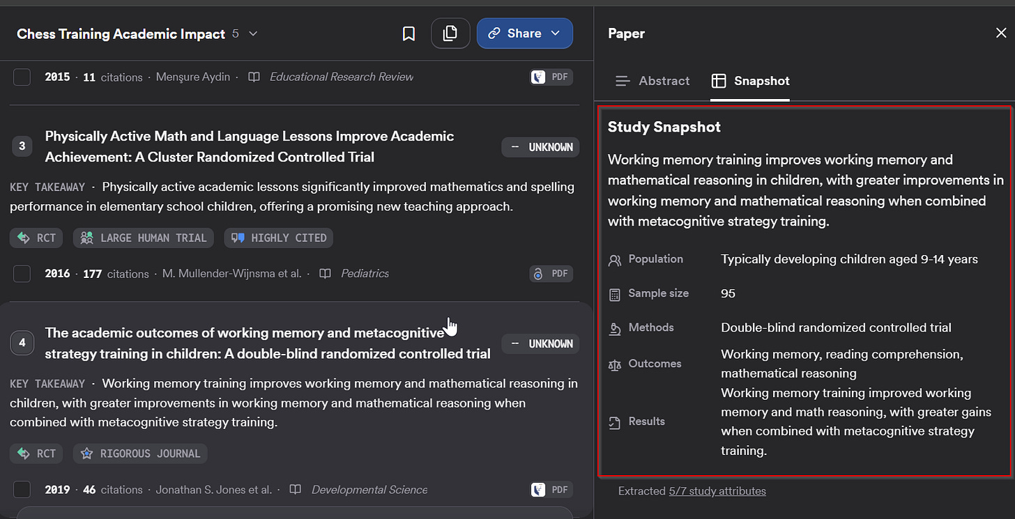 These power the “Study Snapshots” for individual papers. It’s a genuinely useful feature, especially for quick triage. But the classifications are AI-generated and can be wrong.