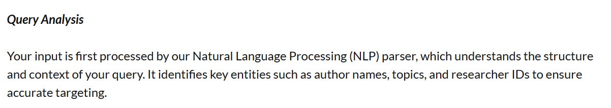 a) it uses an LLM to convert natural language input to a Boolean Search (e.g. Web of Science Research Assistant)