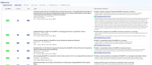 Like in the example above, I ask for studies on how well ChatGPT works as a screener in systematic reviews and it smartly ask me to narrow down. For example, it "knows" that there are studies that measure this using metrics like recall, precision. In some other attempts it asked me if I was looking for just ChatGPT performance or other LLMs.