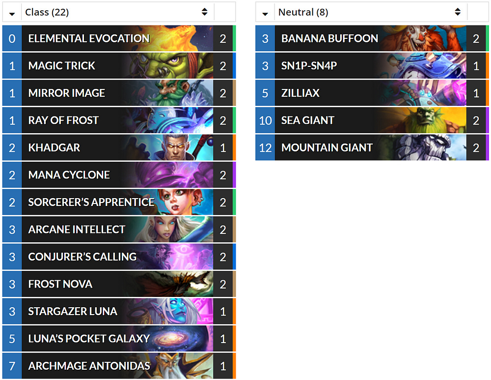 Conjuring mages deck are of course the opposite to the earlier Token druid deck and here the player’s skill makes a big difference to playing the deck with success. In other words this is a high skill cap deck and the range of skill displayed makes a big difference.