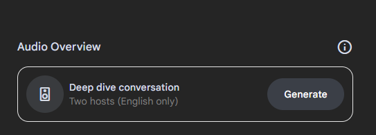 As such, I was surprised to discover a few days later, "Audio Overviews" features was launched in Google Notebook LM which was more or less the same feature.