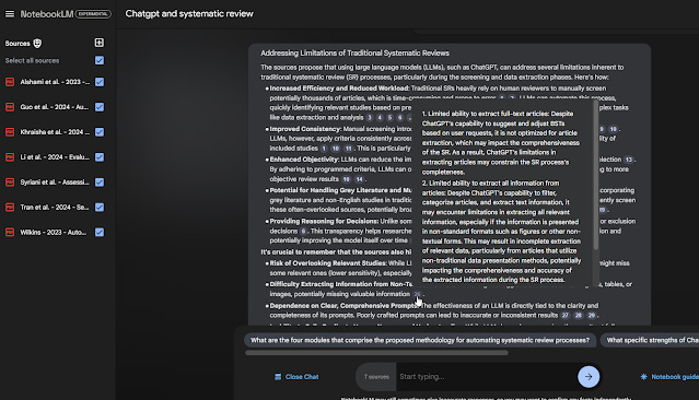 I was curious how it would summarise this complicated paper in the set. It just said it uses "contextual embeddings" which is teaching AI to go "beyond matching keywords and looking at the relationship between those words and the nuances between these words" and it goes on and on about what a systematic review is and why if AI can do it how big a timer save it is.