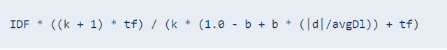 With BM25, the score is from a more complicated formula but with some study, we can intutively understand that if the term frequency of a document is high it should be ranked higher, if the term matched is rare in the whole document corpus (IDF or inverse document frequency) it should be ranked higher and with adjustments for term saturation and document length.