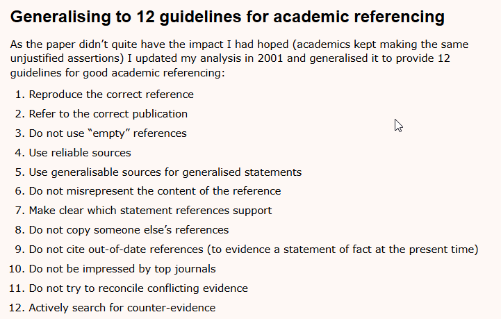 An alternative idea, I have been toying with is formally adapting Harzing’s 12 guidelines for academic referencing (last updated in 2001 which was designed purely for humans) as a standard to assess RAG output.