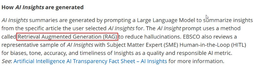 While you might expect these systems to feed entire documents to an LLM, most academic implementations—including EBSCO AI Insights and ProQuest Research Assistant—use RAG internally.