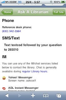 One can setup a general "Ask us" contact page to email, phone , SMS reference and IM, or choose to have a staff directory or department directory with individual contacts. On an iPhone touching any of these options will usually open email, make a call, send SMS etc.