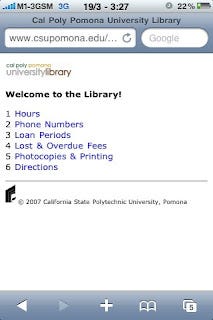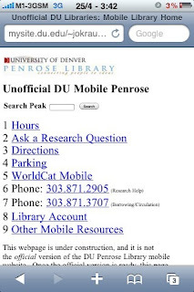 Everyone knows mobile is hot now, and many libraries are scrambling to add mobile friendly pages. Currently the most complete listing of libraries with mobile sites can be found at the Library Success Wiki site , which lists over 40 such sites.