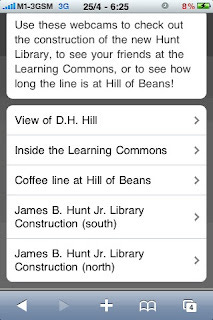 In a somewhat similar vein, it is possible to link to webcams in the library to help users see how busy certain parts of the library are so they can decide whether to walk over to use the facilities.