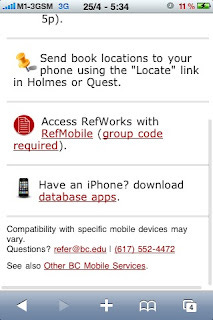 Quite a few libraries also provide links to the mobile version of Refworks. (What about other web-based reference managers like Mendeley? Do they have mobile versions or iPhone apps?)