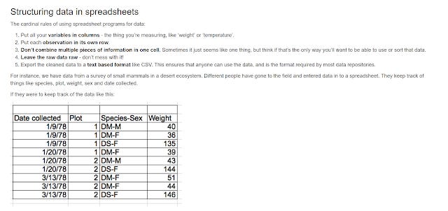 They cover common mistakes, good practices for structuring data and provides some of the best explainations I have read on the difficulties of handling dates in Excel and provide suggestions on how to deal with them.
