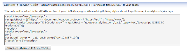 If you are doing this in Libguides, you need to split the tracking code given by GoogleAnalytics. Under system wide setting..., you need to add one part to the custom header