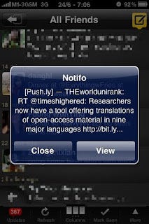 Below shows a notification from Notifo , a tweet from the Twitter account timeshighered (an account I follow closely)
