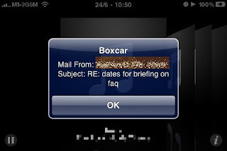 Whenever, this happens , Boxcar will popup a nice preview notification showing who the sender is, and what the subject is.
