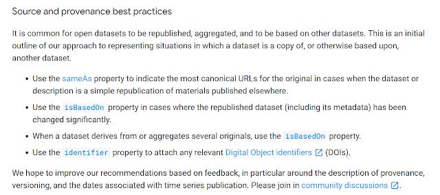 In a sense this move by Google isn't surprising. As I noted just last month, general dataset discovery is a "new" library challenge. As I noted then aggregation and discovery of datasets is in it's infancy. Still it's surprising that until now there was no major attempt to do a "Google Scholar but for datasets" from anyone.