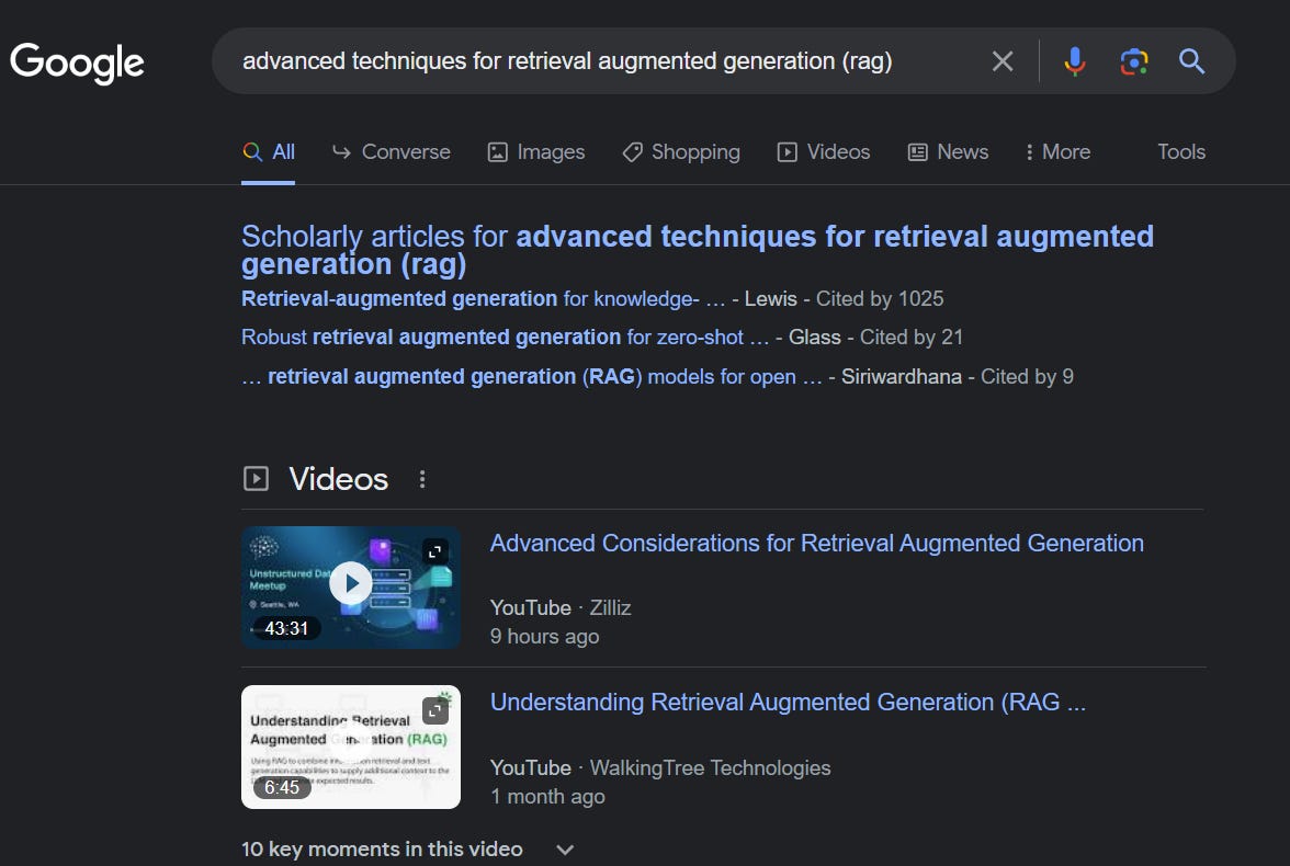 In past ResearchRadar pieces, we have discussed about how search engines both general (e.g. Bing Chat, Perplexity) and academic (e.g Elicit, Scite Assistant, Scopus (upcoming)) are integrating search with generative AI (via Large Language Models) using techniques like RAG (Retrieval Augmented Generation).