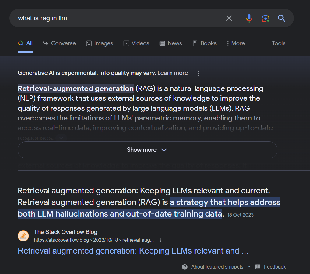 However, given that these systems now are integrating search with generative AI (via Large Language Models) using techniques like RAG (Retrieval Augmented Generation). Each generated sentence typically comes with a link or citation so you can check the source to verify the answer.