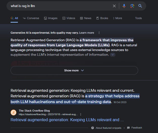 For many search queries, with the SGE experience turned on it behaves like many other similar implementations you see in Perplexity, Bing Chat.