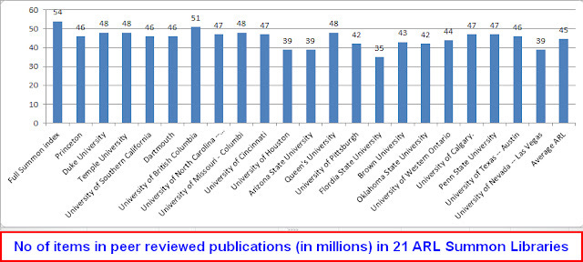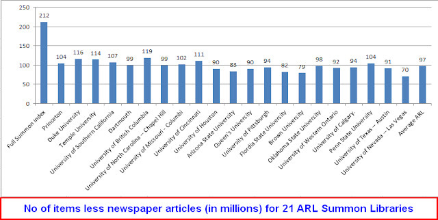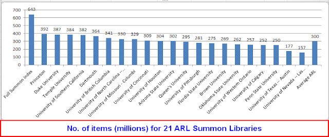 Neither are the figures a 100% representation of what each library has, some might be more complete in terms of putting packages they subscribe into Summon and even if this wasn't a factor, what Summon shows is limited to what is indexed in Summon.