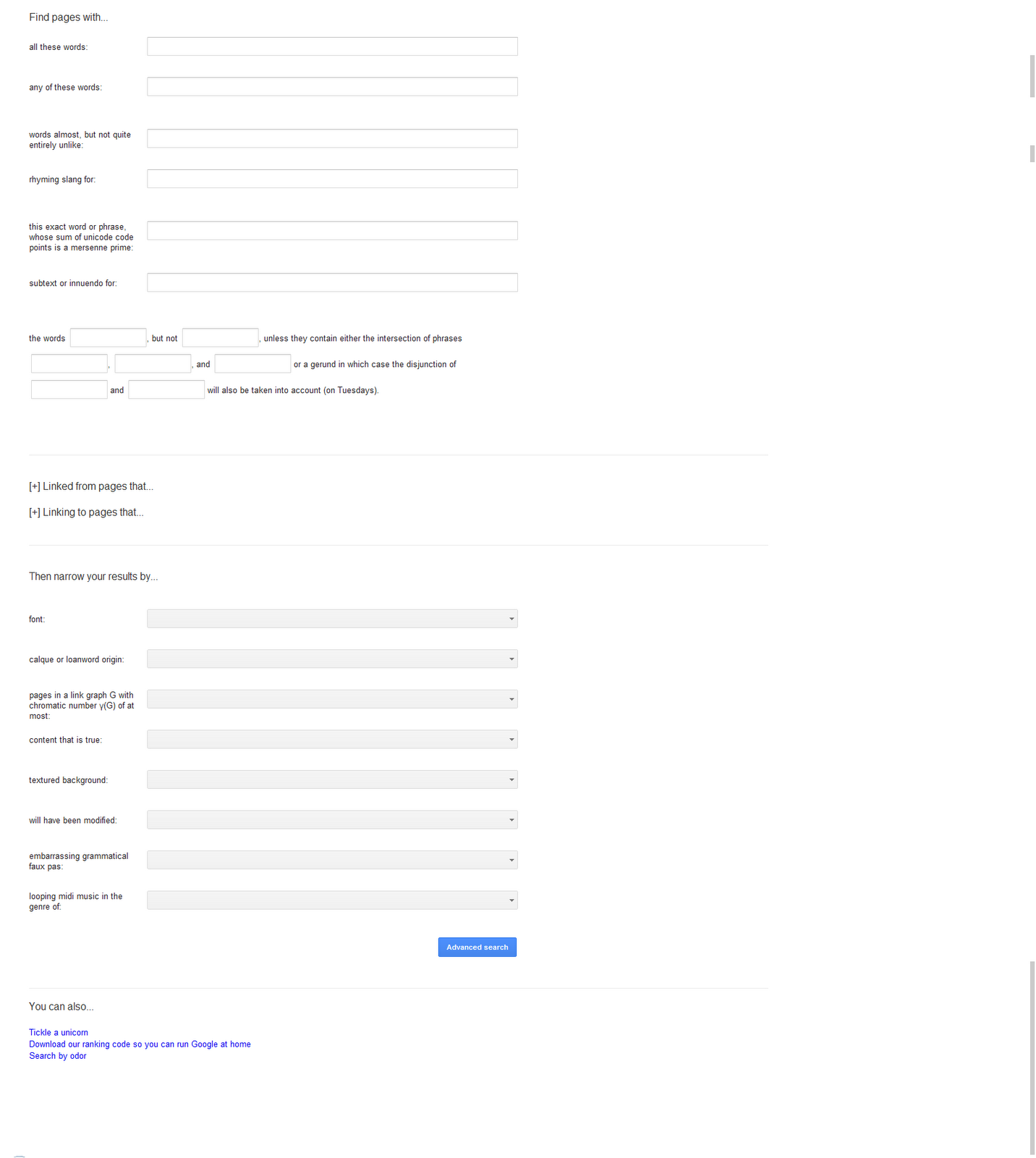 Of course we librarians love our advanced searches, and to "honour us" Google gave us this awesome advanced search on April 1 2012. Just kidding!