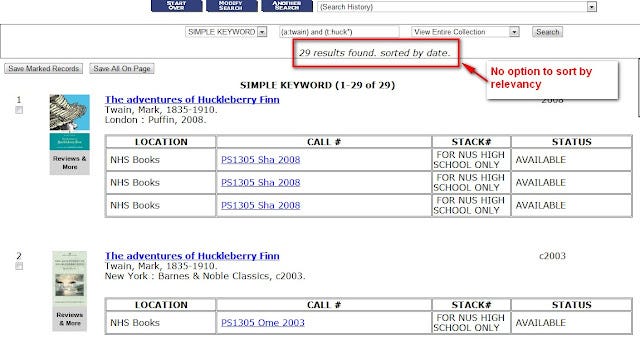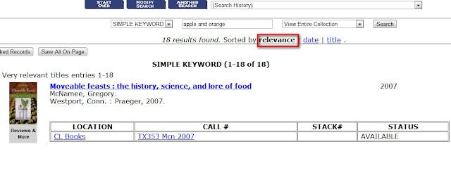 Of course today the newer OPACs and next generation catalogues have relevancy ranking as the default (relevancy ranking is one of the signature characteristics of a next gen catalogue).