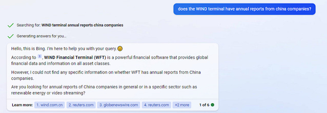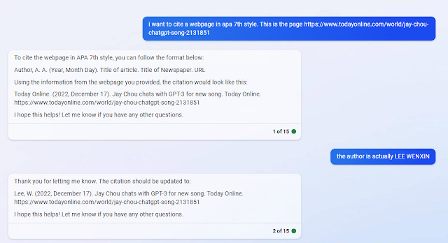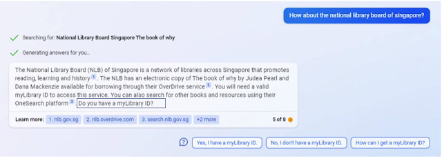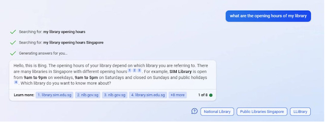 Using just the new Bing+Chat which was not optimized for the library chatbot use case, the results are amazing.