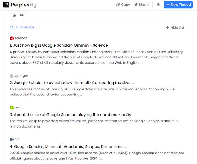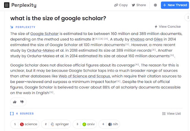 For example, when I was writing the blog post on techniques for finding seminal papers, I checked with perplexity, ChatGPT to see if there were any interesting techniques but the best it could do is to state obvious answers and not the fairly novel idea I had in mind of using Q&A systems.