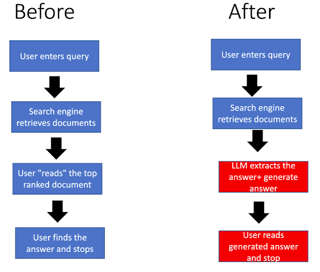 But for this article I'm going to focus on one specific area I have some expertise in, the implications of large language models (LLMs) on information retrieval and Q&A (Question and answer tasks) where LLMs are used in search engines to extract and summarise answers from top ranked documents.