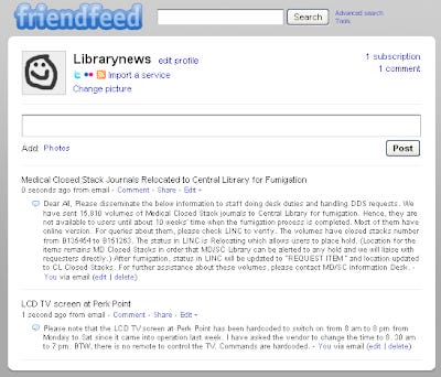 An information dashboard for your library service points (I) - Using email, RSS and FriendFeed