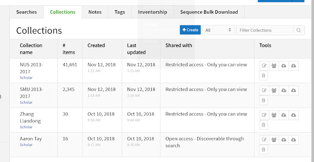 Below shows some collections I have created. Some are for institutions for my comparisons and some are for authors.