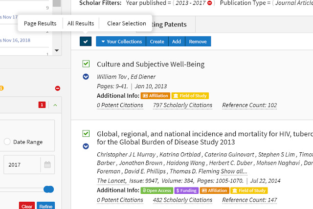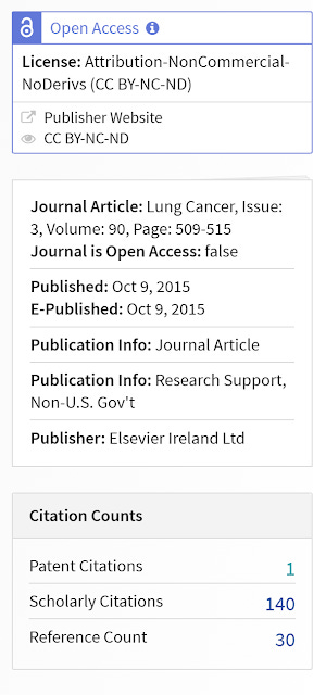 For comparison as at time of writing Microsoft Academic is boasting of 200 million records - which makes me wonder again about how much this one source is impacting Lens and whether the Scholarly search of Lens is just Microsoft Academic really.