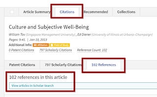 Then lower down, select "XXX references" and click on view articles in Scholar Search