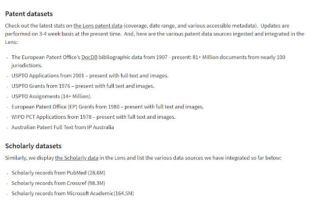 The most interesting aspect of Lens to me besides the patent related functionality, is how it blends together data from various open data sources - including