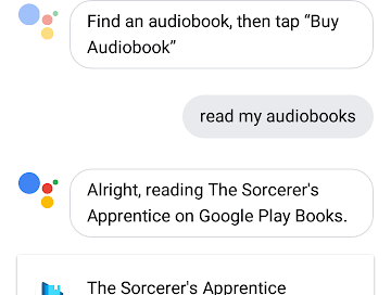Google Play Books - This allows you to command google to play your audio books in Google Play Books, you can command it to jump ahead or back.