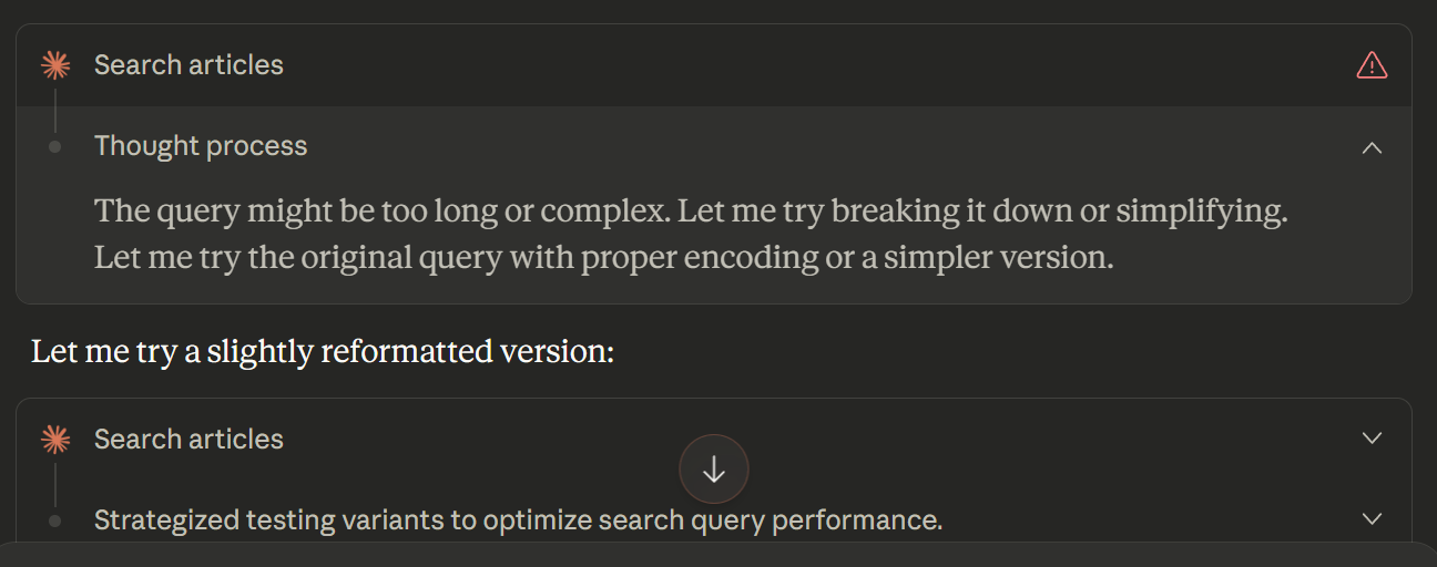 This highlights an emerging challenge for natural language search interfaces: we lack affordances showing what’s possible (e.g. filters available). With agentic search, the range of possible tasks has expanded so dramatically that users don’t know what’s achievable and what isn’t. E.g. Can Claude use Wiley Connector to look up a paper, find related papers that are related and could have been cited but are not cited? Answer : With the Wiley Connector no because it can’t easily access the references to check.
