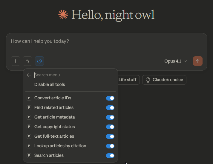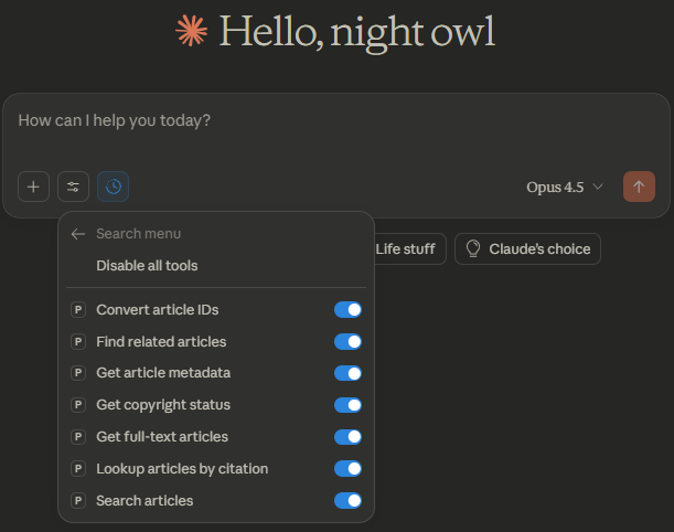 While exploring the Wiley AI Gateway, I discovered you could also enable a PubMed MCP server. It’s appears to be one offered by Anthropic, but unclear if NLM is involved.